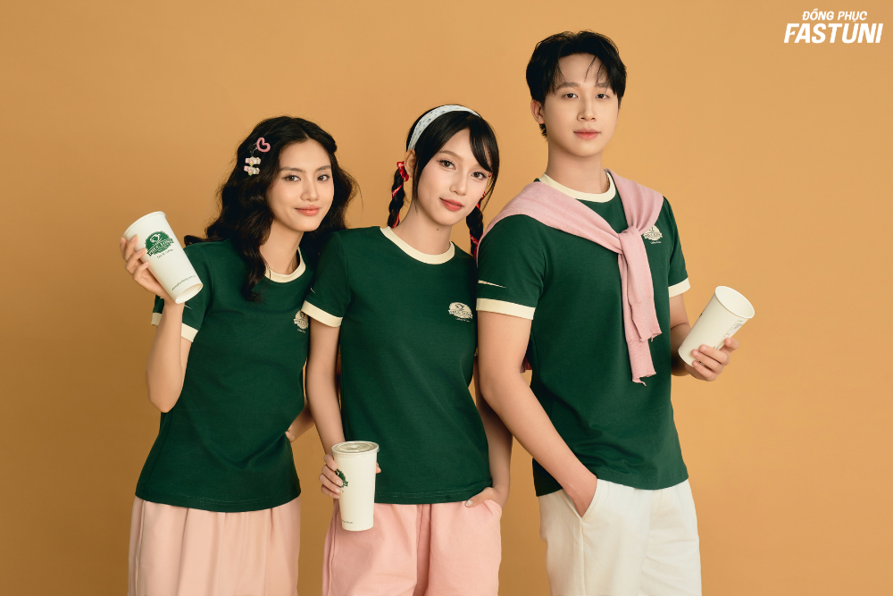 Không dừng ở đó, các mẫu đồng phục áo thun cổ tròn còn có khả năng phối đồ đa dạng. Từ quần jeans, quần tây, quần vải cho đến các mẫu chân váy bút chì, chân váy chữ A,… giúp thể hiện phong cách và cá tính thời trang riêng của mỗi cá nhân nhưng vẫn tạo được sự đồng nhất trong hình ảnh thương hiệu.