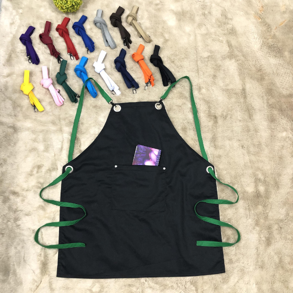 - Thiết kế dáng tạp dề dây đeo chéo đơn giản, dây đeo dễ dàng điều chỉnh phù hợp với mọi dáng người.